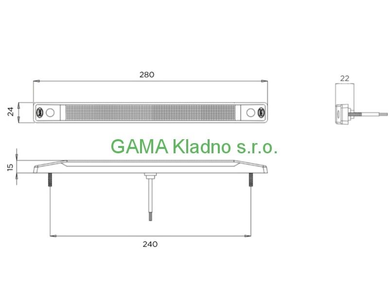 Světlo denního osvětlení -lišta 12LED, 280mm, 1ks - 280x24x15mm . IP67, 5W