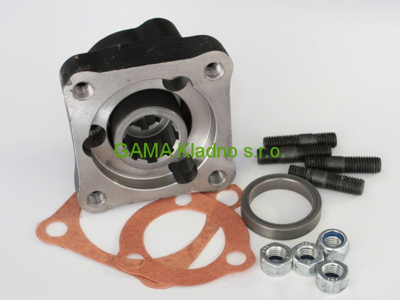 Adaptér umožňuje připojit čerpadlo s ISO čtyřděrovou přírubou na pomocný pohon s tříděrovou přírubou UNI. Drážkování 6x21x25/8x32x36.