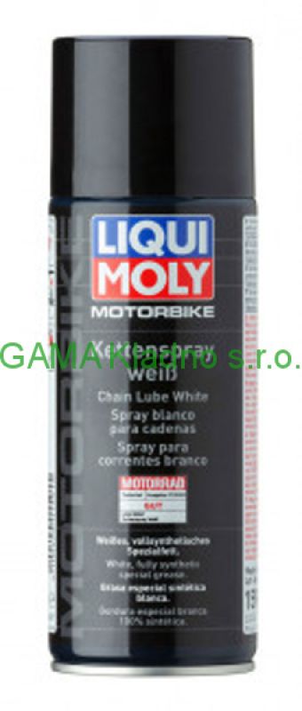 Bílý plně syntetický speciální mazací tuk na řetězy motocyklů. Pro optimální mazání řetězů kvůli viditelné nanesené vrstvě tuku. Je odolný proti horku, chladu a stříkané vodě. Má velmi dobrou přilnavost a chrání proti opotřebení. Zmenšuje prodlužování řet