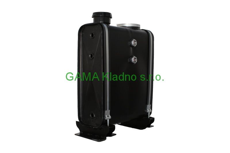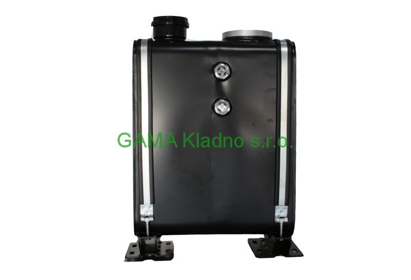 Nádrž hydraulického oleje 50l kontejneru za kabinu. Rozměry v=565, l=460, š=197 rozteč šroubů 380mm Šikmý výstup s vnějším závitem 1" (zátka na výstup 500000822) Alternativní výstup na úzkém boku 3/4" a otvor pro olejoznak 3/4" (zátky 500000821, těsnění