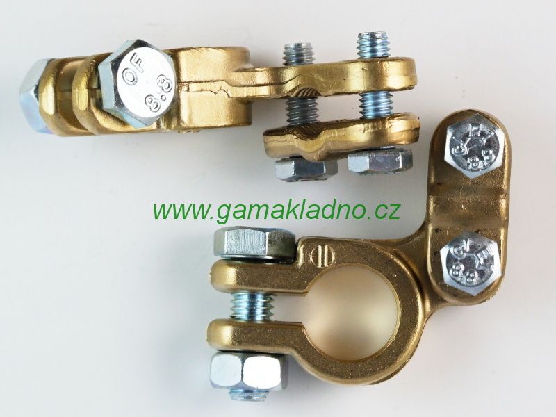 Svorka baterie (+) pól mosazná kovaná i s kovaným třmenem