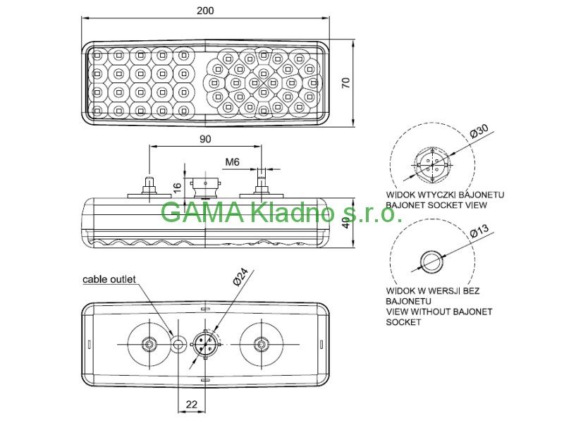 Popis Zadní svítilna 2-komorová LED